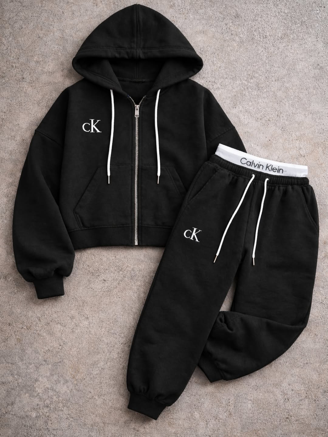 Gardırobunuzun en iddialı ve konforlu parçasıyla tanışın! Kusursuz siyah tonu ve ikonik Calvin Klein (CK) detaylarıyla tasarlanan bu ikili takım, Rivella Butik kalitesiyle hem günlük şıklığınızı hem de konforunuzu zirveye taşıyor.